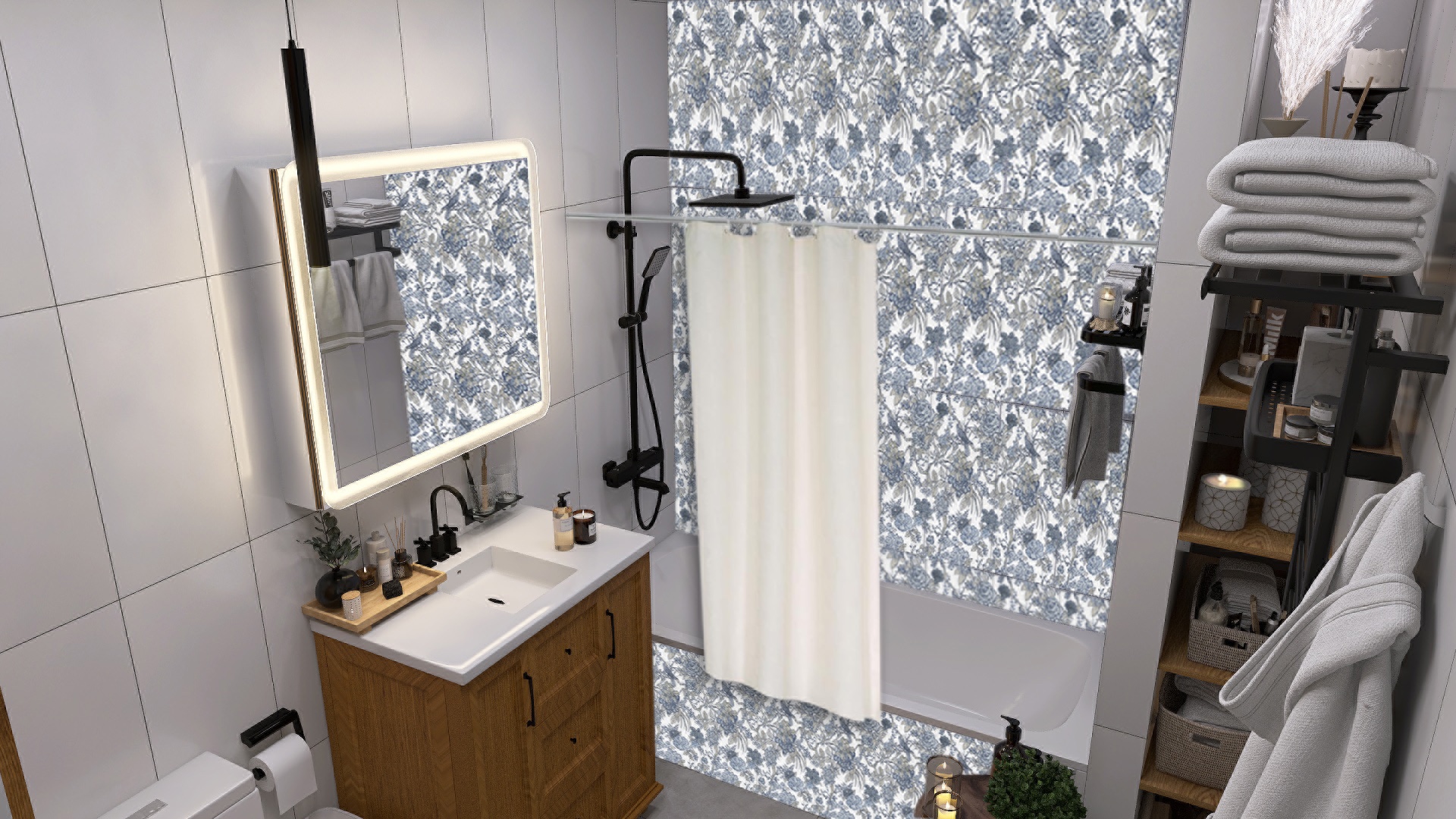 #Дизайн-проект#Дизайн-проект квартиры#Визуализация#Ванная#Кантри стиль#Дизайн-проект под ключ#Дизайн интерьера Москва#Дизайн интерьера#Полный дизайн-проект#Светлые тона#Светлый интерьер#Обновление ванной#Деревянные вещицы в интерьере#Плетеный декор#Зелень в интерьере#Природа#Эко