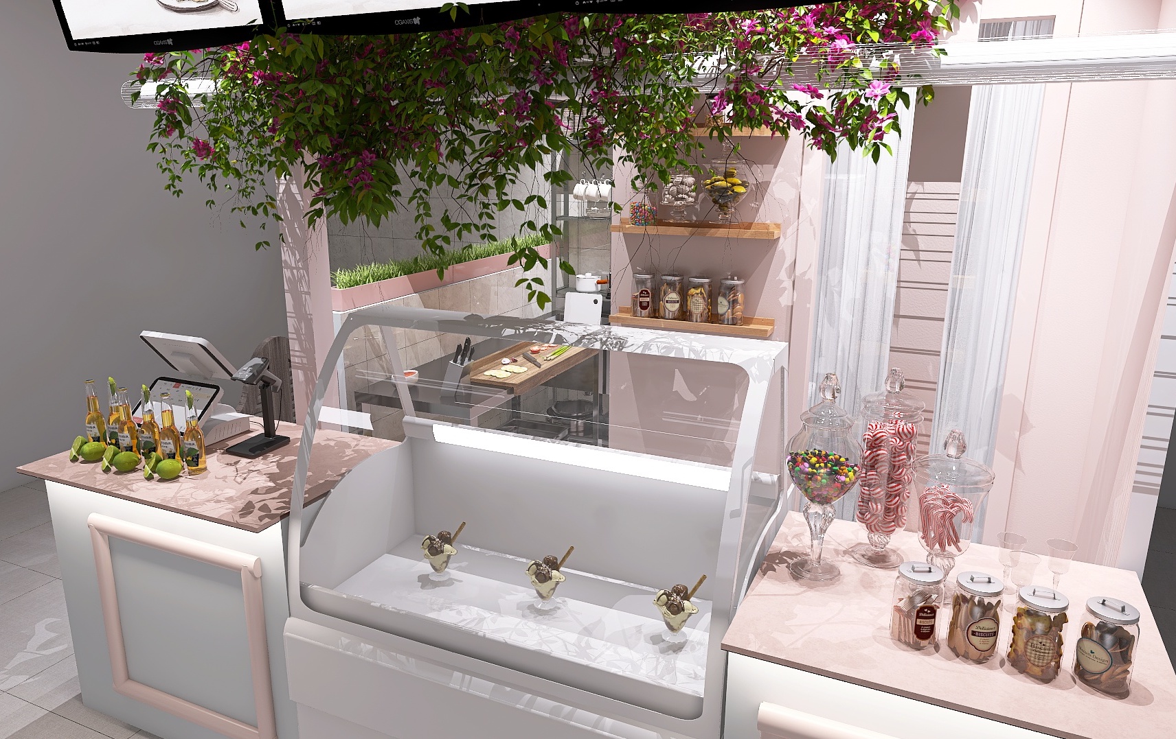 #Дизайн-проект#Дизайн проект коммерции#Дизайн-проект корнера#Дизайн-проект мороженого#Дизайн интерьера Москва#Дизайн интерьера под ключ#Коммерция#визуализация#Чертежная документация#Общественное пространство#Полный дизайн-проект#Корнер#Нежно розовая палитра#Неоновая надпись#Сладости#Мороженое#Витрина с цветами