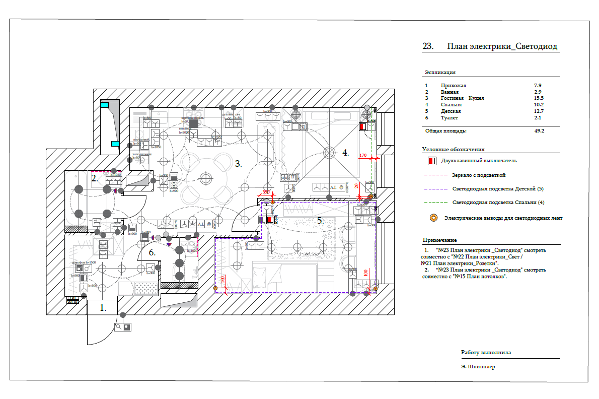 Интерьер был выбран в светлых тонах с точечными акцентами. Также в проекте был разработан разный сценарий освещения для комфортного проживания в данной квартире. Все пожелания заказчика были учтены и предусмотрены в проекте.