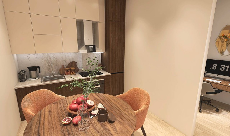 14 мая, 2025Основная цветовая палитра проекта была выбрана светлой, акцентным оттенком выступил приглушенно оранжевый. Чтобы оранжевый не был "кричащим" цветом в интерьере, его "успокаивает" зеленый оттенок. Благодаря такому сочетанию квартира выглядит живой и уютной, тк именно такие оттенки отвечают за эти качества.