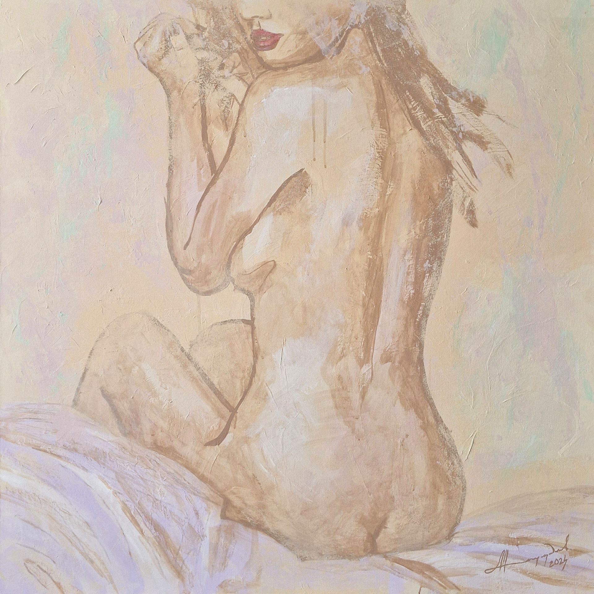 #ню#девушка#эротика#эротическая живопись#холст#акрил#теплый колорит#современная живопись#искусство#арт#пастельные тона