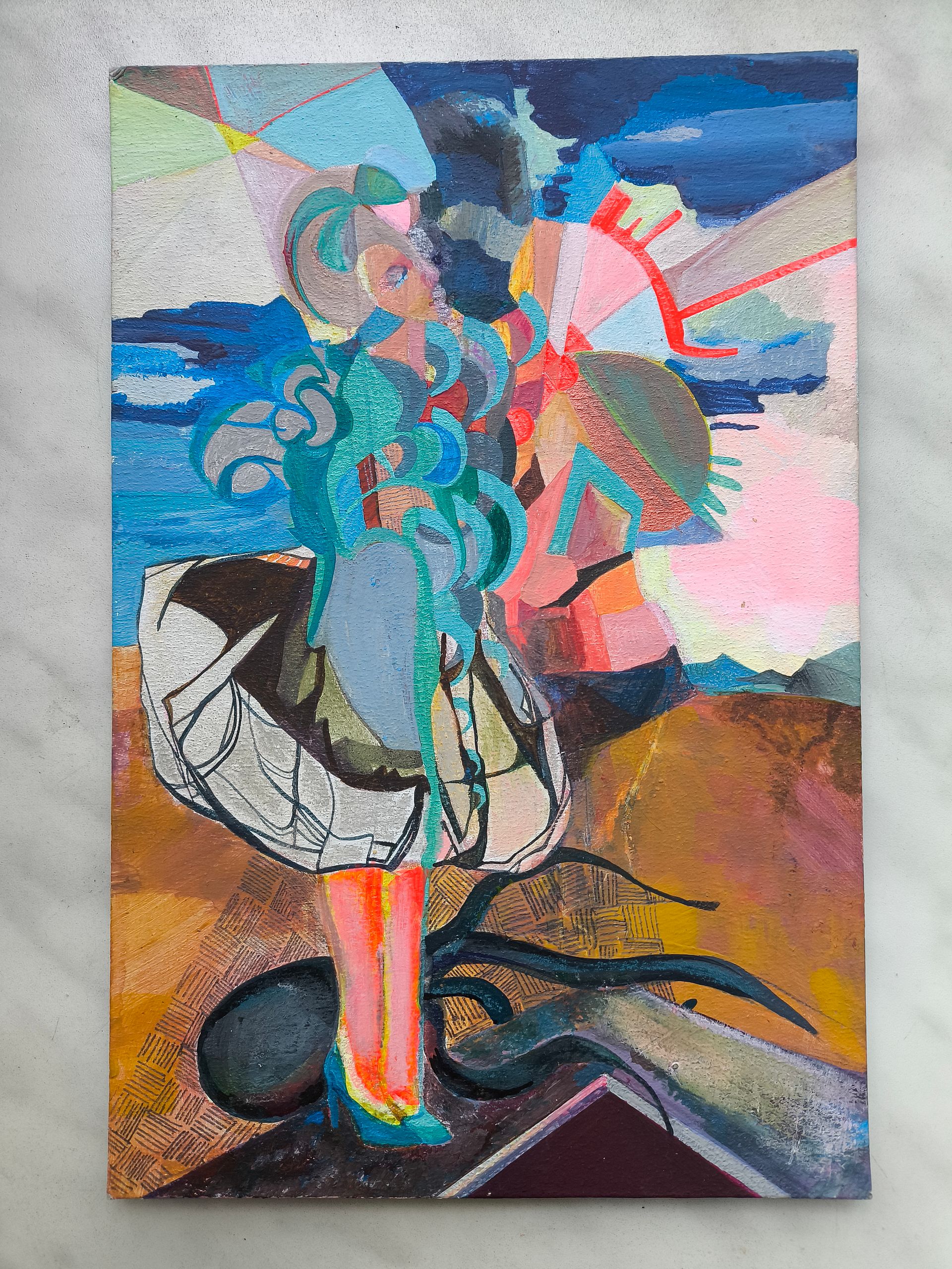 Был у меня период увлечения книгой "Алиса в стране чудес". Очень нравились иллюстрации Джона Тэнниела. Будоражила ум головоломкость текста и образность иллюстрации. Думаю так и родилась моя Алиса с осьминогом у ног на краю бассейна.