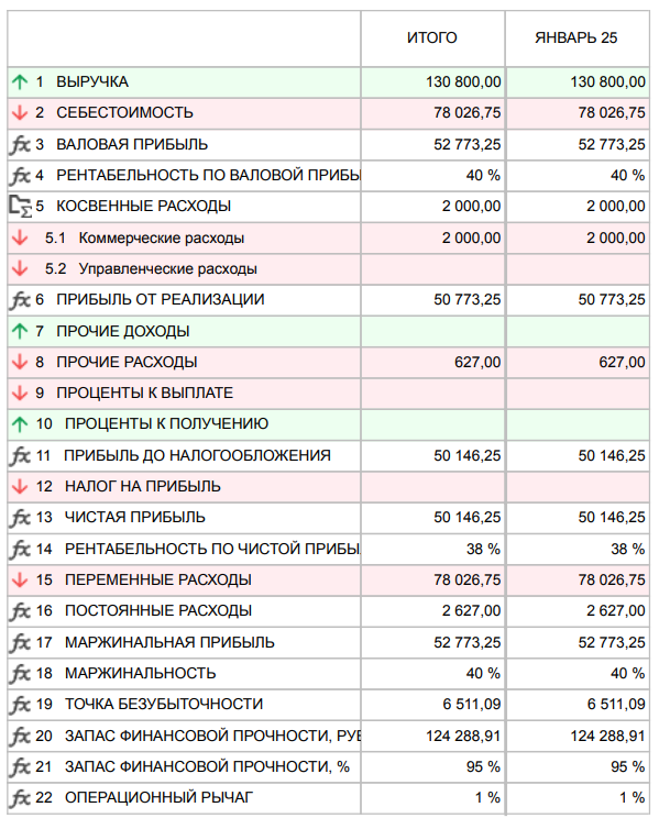 Доходы и расходы компании по итогам за месяц