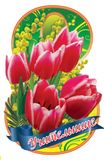 Дизайн-макет открытки к весеннему празднику - "8 марта!".