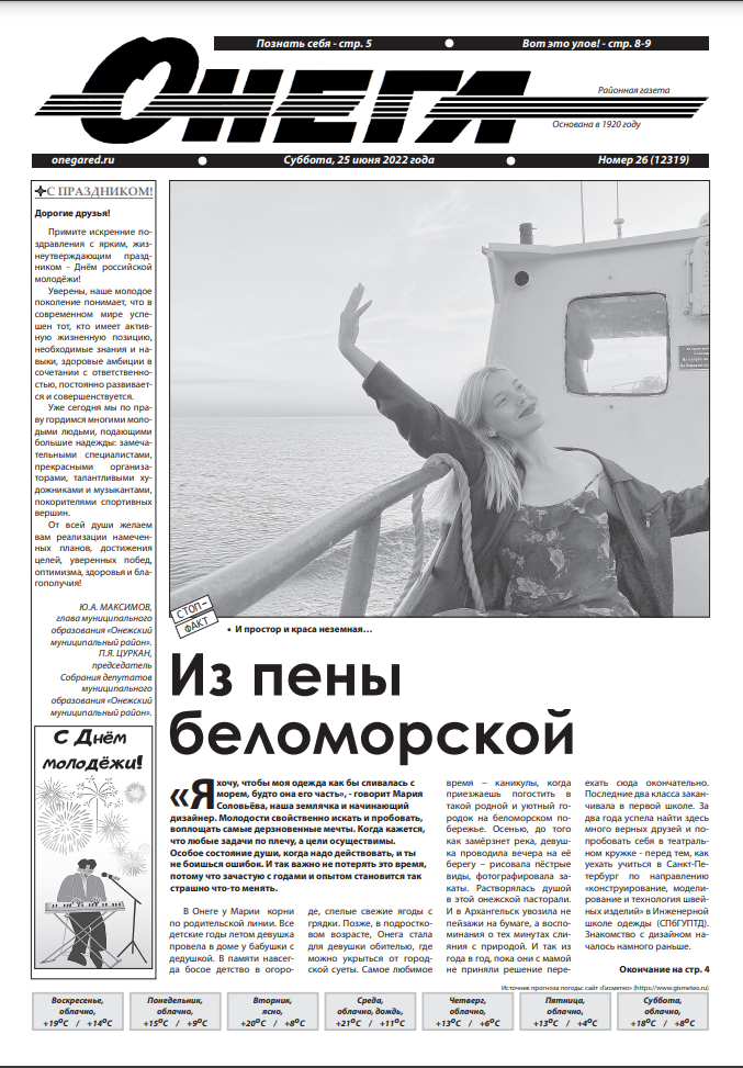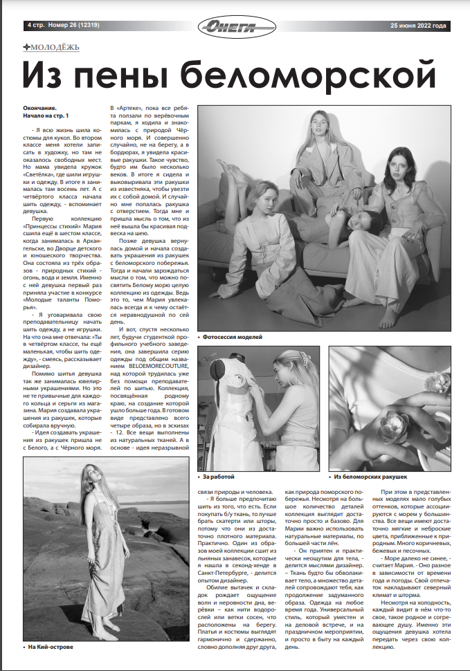 Интервью с дизайнером одежды для районной газеты "Онега"