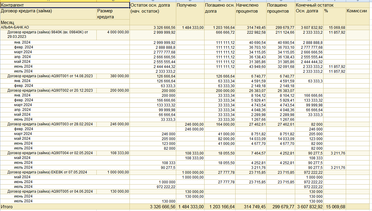 #кредиты#отчет#основной долг#остаток