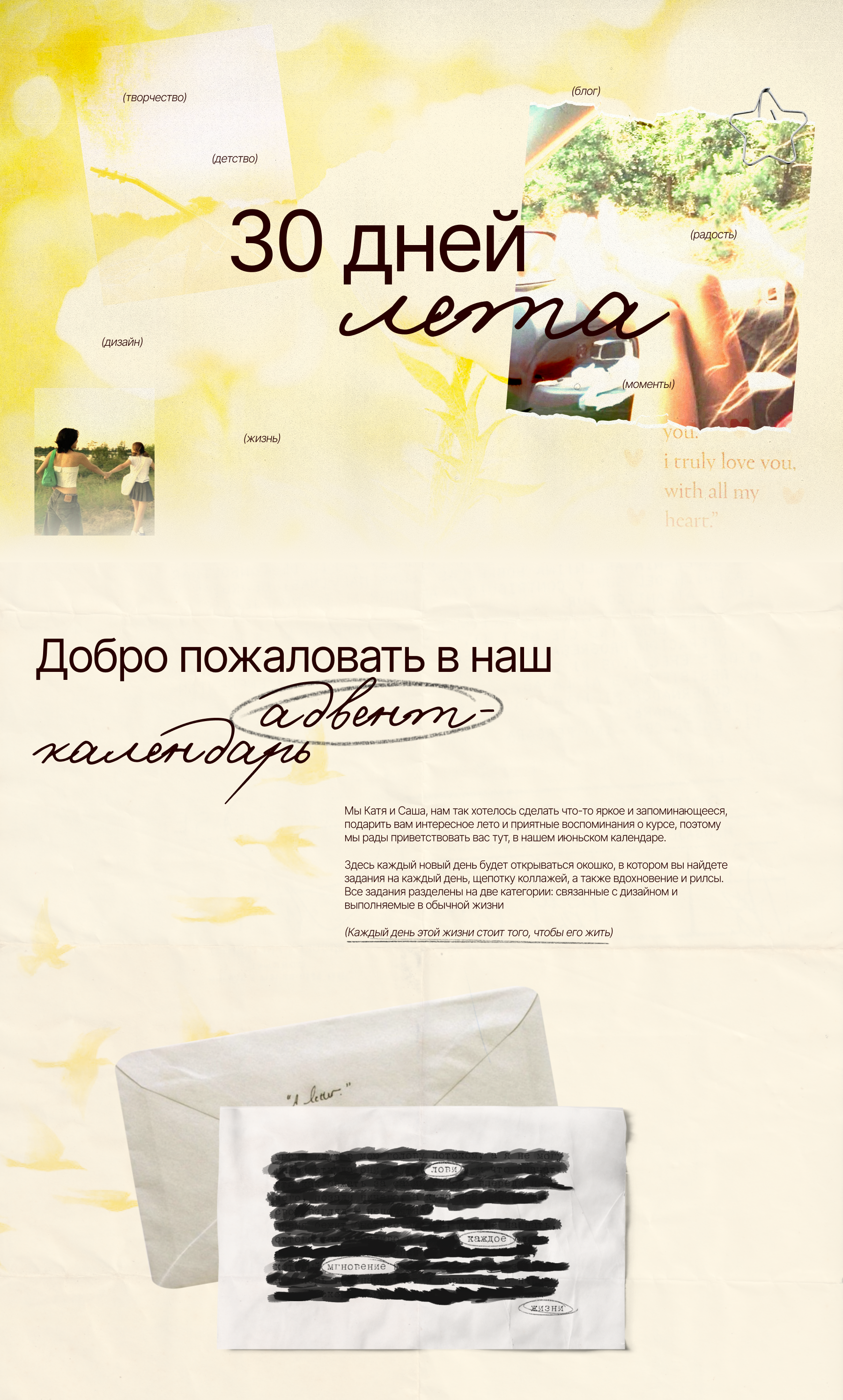Закрытый коммерческий проектНостальгический и теплый адвент календарь, чтобы вспомнить свое детство и пробудить вдохновение. Микроанимации и реальные объекты на сайте создают более глубокое погружение