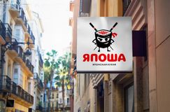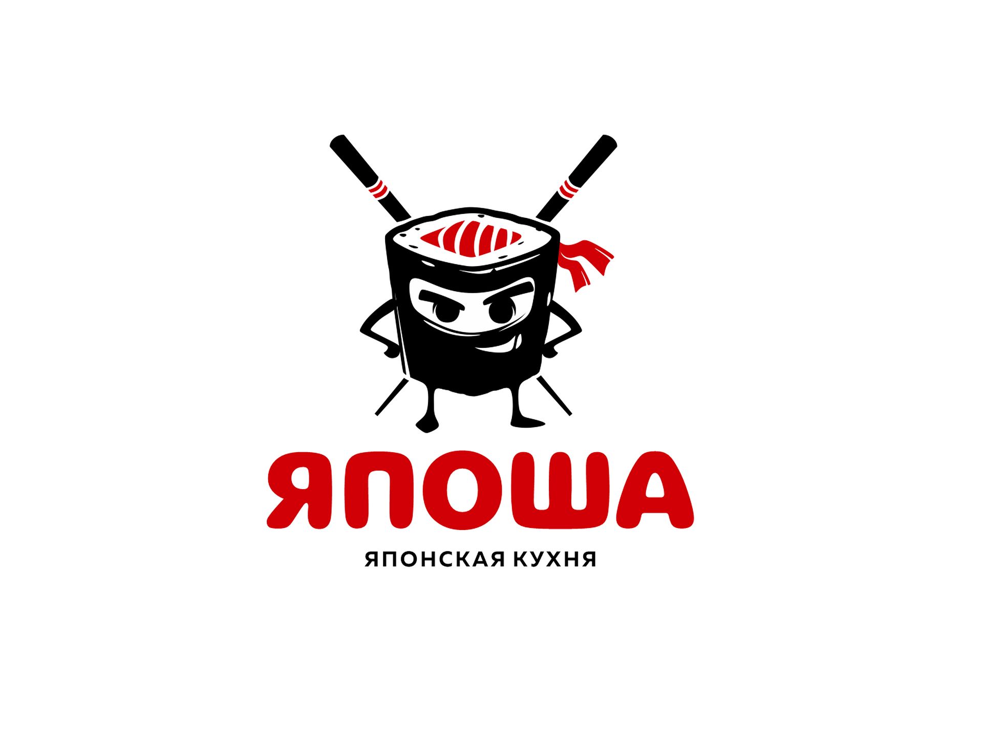 Логотип для кафе японской кухни "Япоша" с фирменным персонажем.