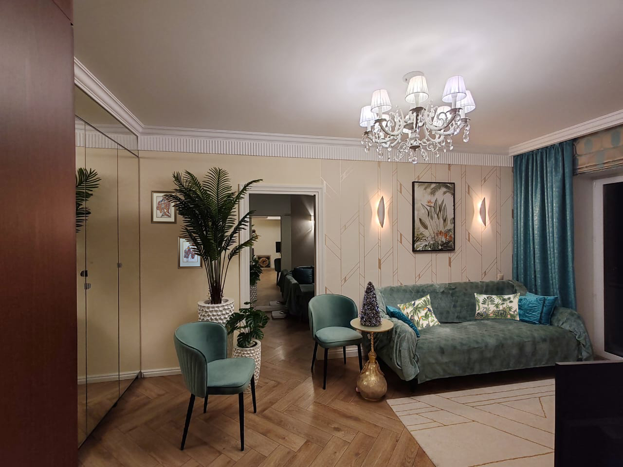 В интерьере преобладают светлые и мягкие цвета. Такое цветовое решение создаёт атмосферу спокойствия, тепла и уюта.