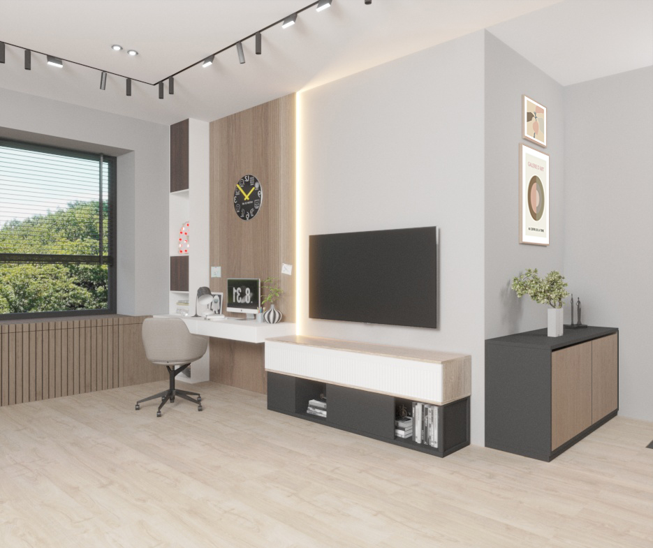 Стиль минимализм с деревом.