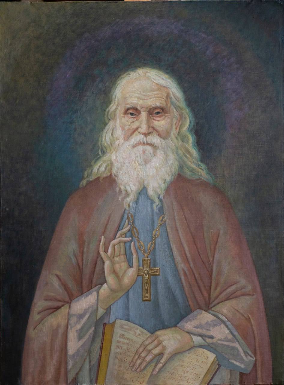 Картина . Митрофорный протоиерей Николай Гурьянов 90х60 х/м. Храм Успения Пресвятой Богородицы, Ленинградская область, Лужский район, деревня Городец. 2024 год