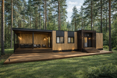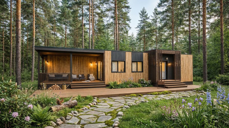 6 марта, 2026Общая планировка включает просторную кухню-гостиную, спальню, холл и два санузла. Такое решение делает дом функциональным и удобным для проживания небольшой семьи или использования в формате гостевого дома.
