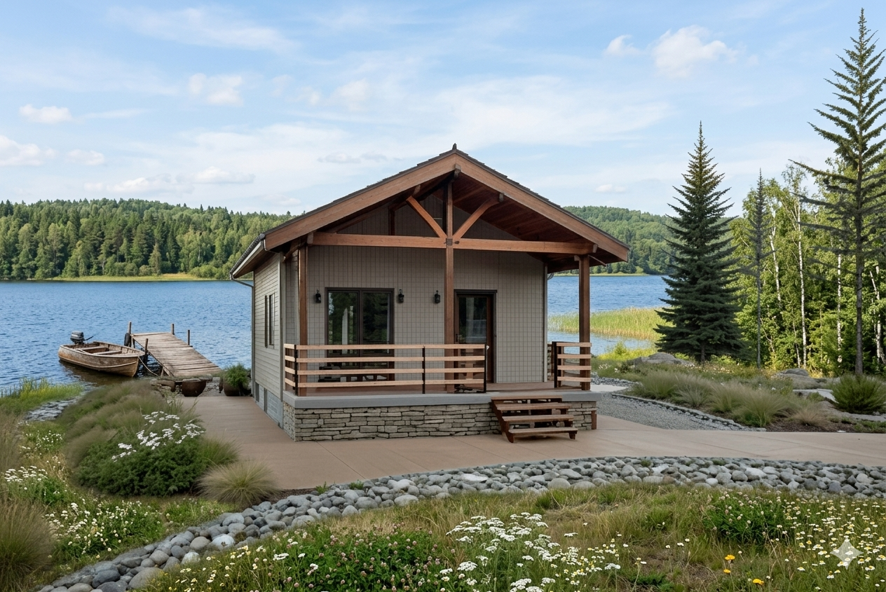 Этот дом отлично подойдёт как для сезонного, так и для круглогодичного проживания небольшой семьи.