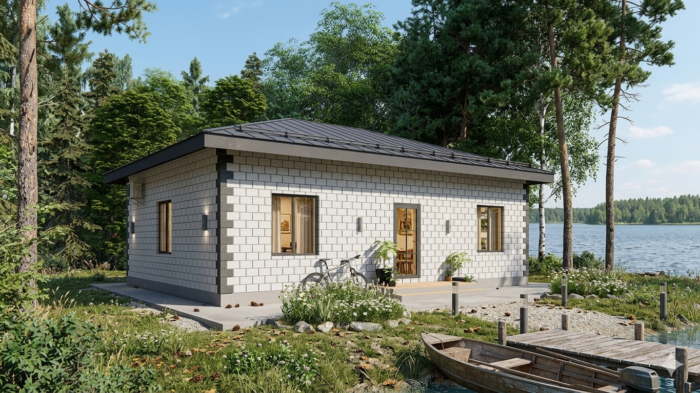 Компактные габариты в сочетании с рациональной организацией пространства делают этот дом идеальным выбором для семьи.