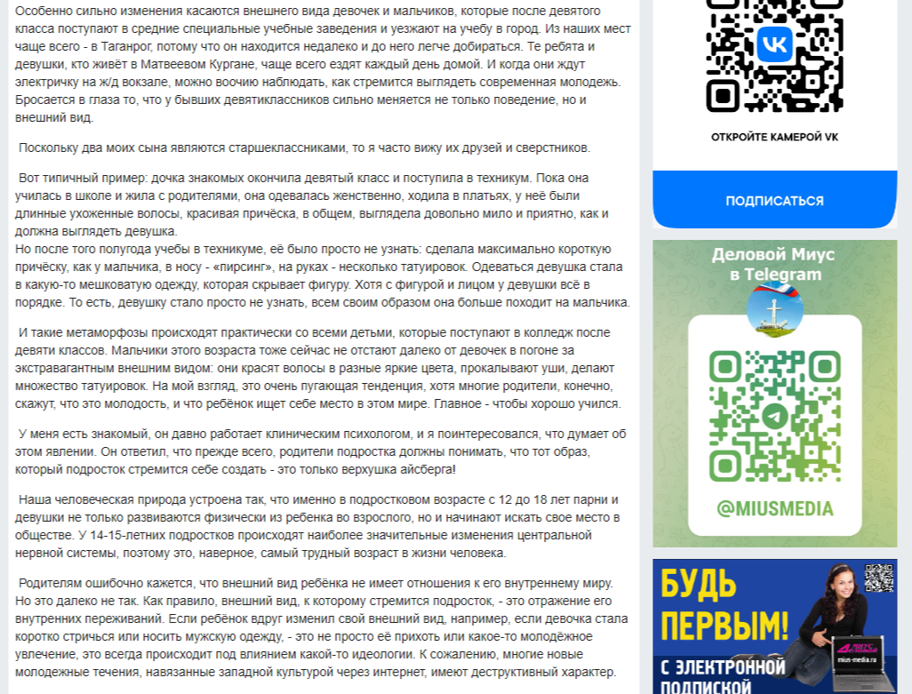 Статья посвященная извечной проблеме отцов и детей. А также здесь рассказывается о том, как современная мода влияет на психику подростка.