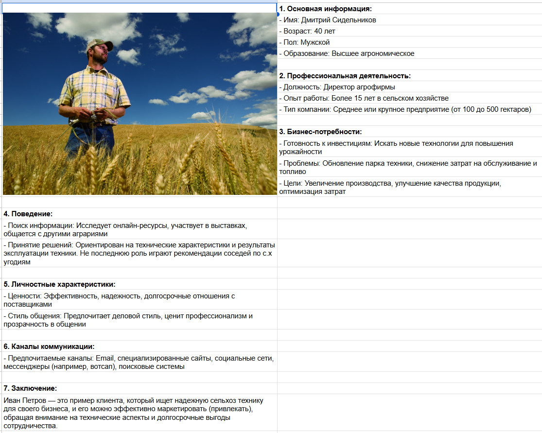 2. Сегментация: Целевая аудитория была разбита на несколько ключевых сегментов, таких как фермеры, агрономы, поставщики оборудования и семян, а также розничные покупатели.