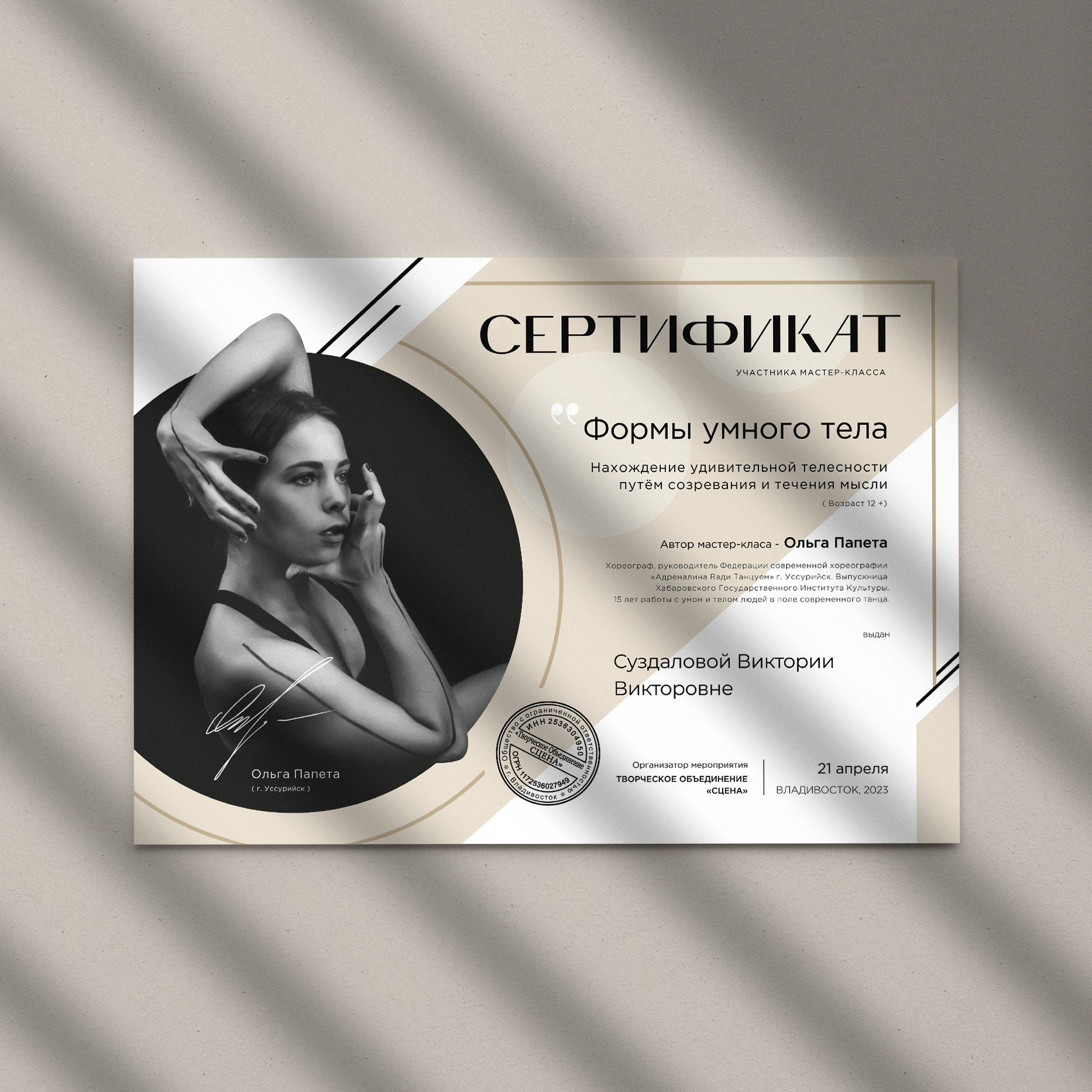 Сертификат о прохождении танцевального мастер-класса