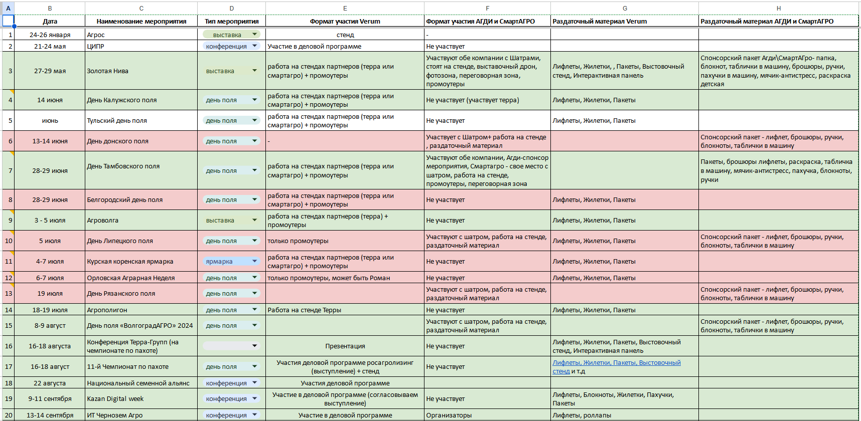На основании собранной информации был подготовлен подробный план участия в выставках, днях поля и конференциях на 2024 год. В плане указаны конкретные даты, места проведения, формат участия (выставка стенда, выступление спикеров, организация мастер-классов), а также бюджеты на каждый вид деятельности. Также были учтены логистика, подготовка материалов и привлечение персонала.