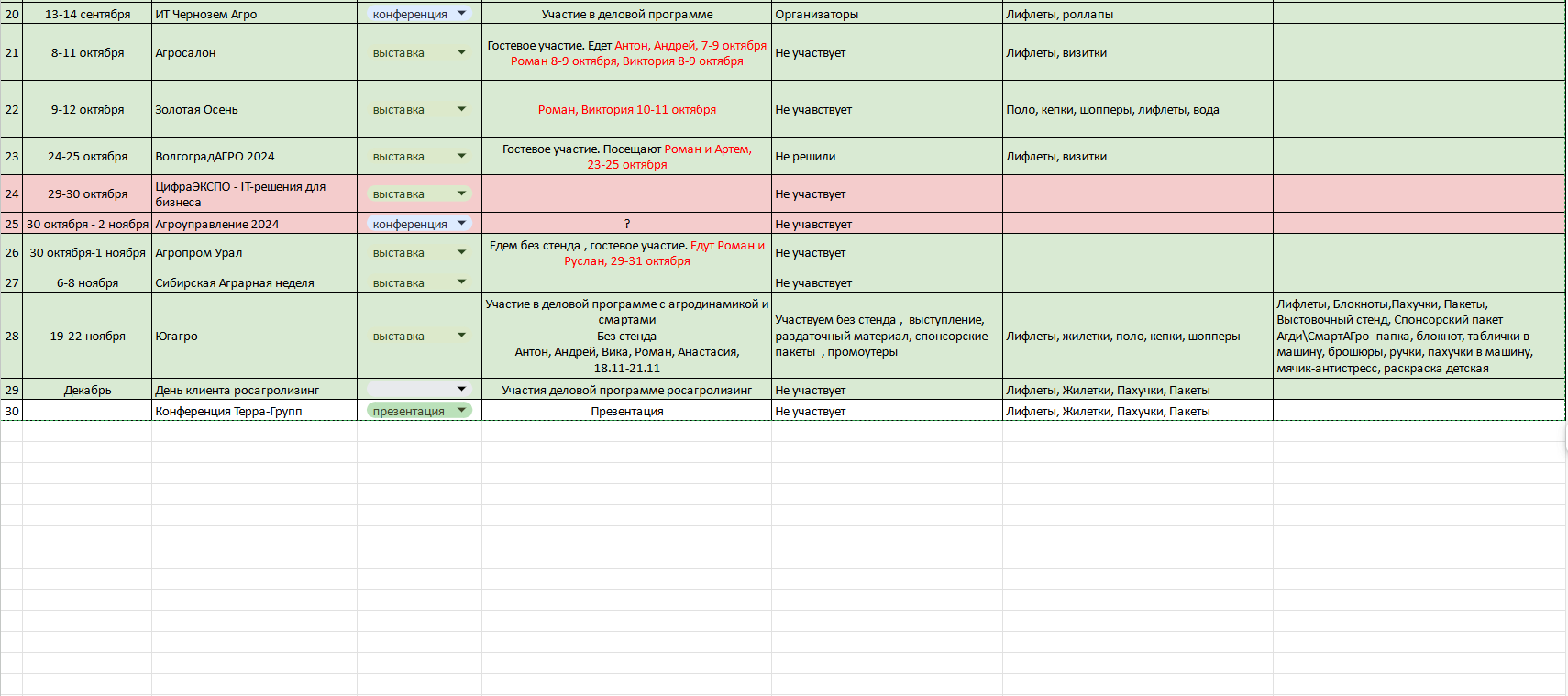 Составление плана на участие в выставках на 2024 года