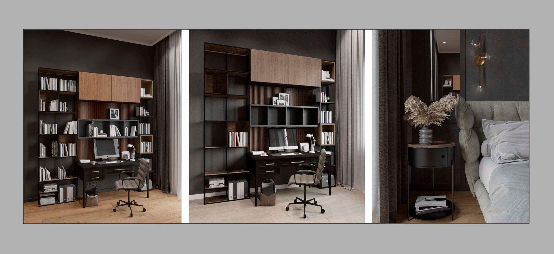 + Выбраны деревянные панели, чтобы подчеркнуть экотренды, разделить помещение на функциональные зоны и дополнить обстановку натуральным деревом.