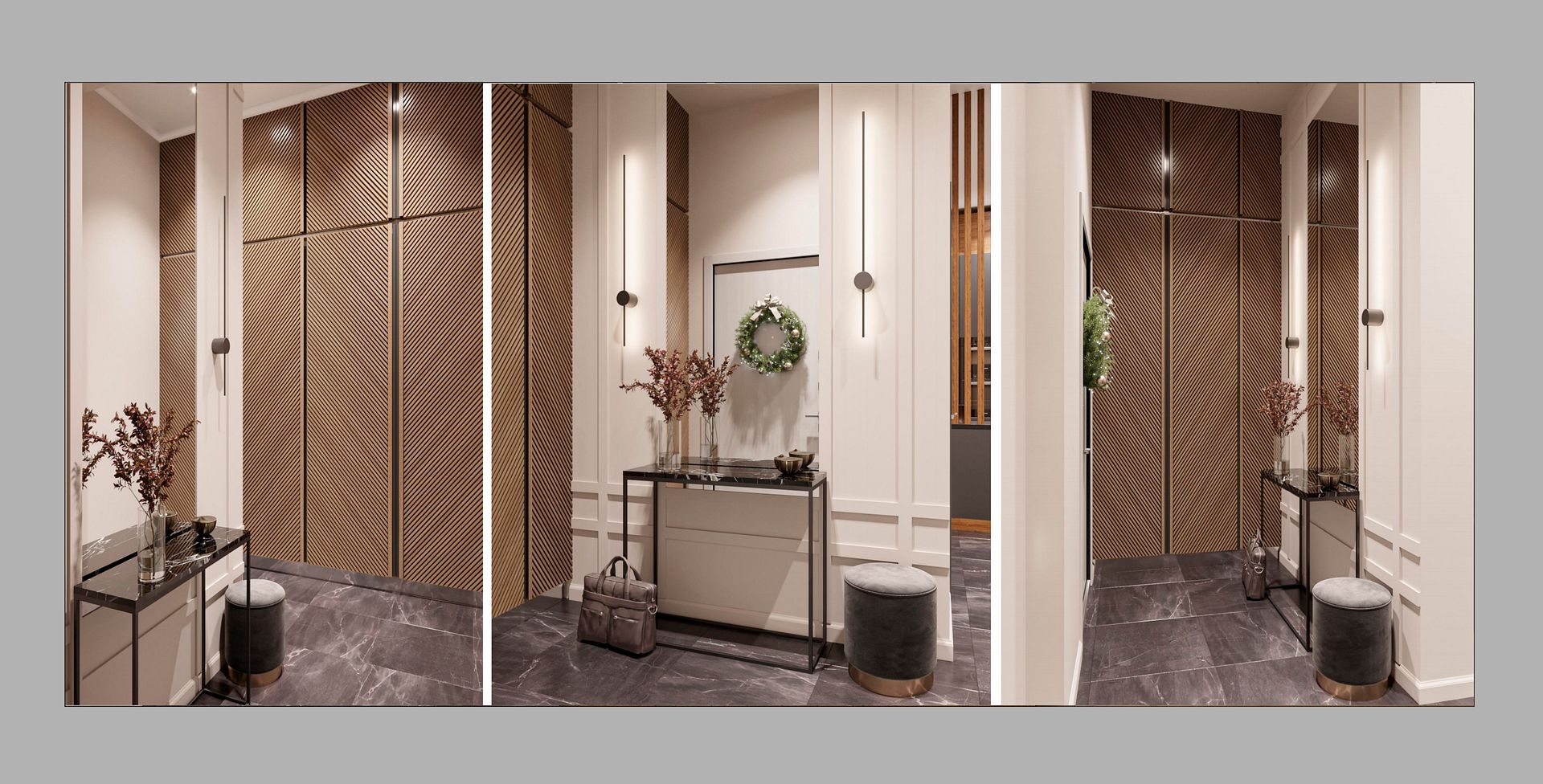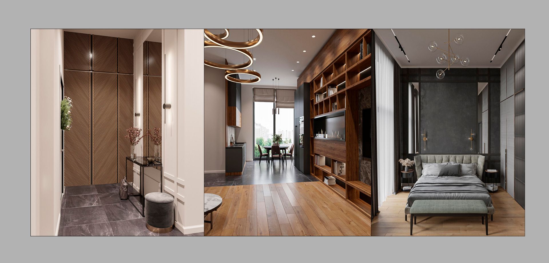 А акцент в квартире сделан на натуральные материалы и светло серую+графитовую палитру красок.
