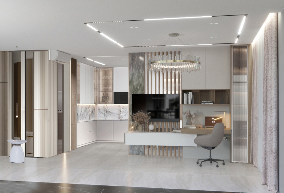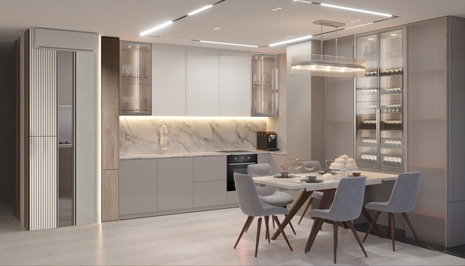 Грейдж в светлых тонах с преобладанием бежевого придаст интерьеру лёгкость, игривость и воздушность. Тёмный грейдж, в котором доминирует серый, сформирует элегантный интерьер с нотками роскоши.