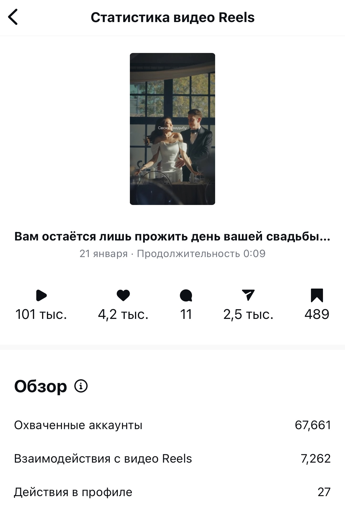 Рилсы, которые набрали больше 100к в аккаунте клиента, а также статистика моего личного рилса тоже на 100к+