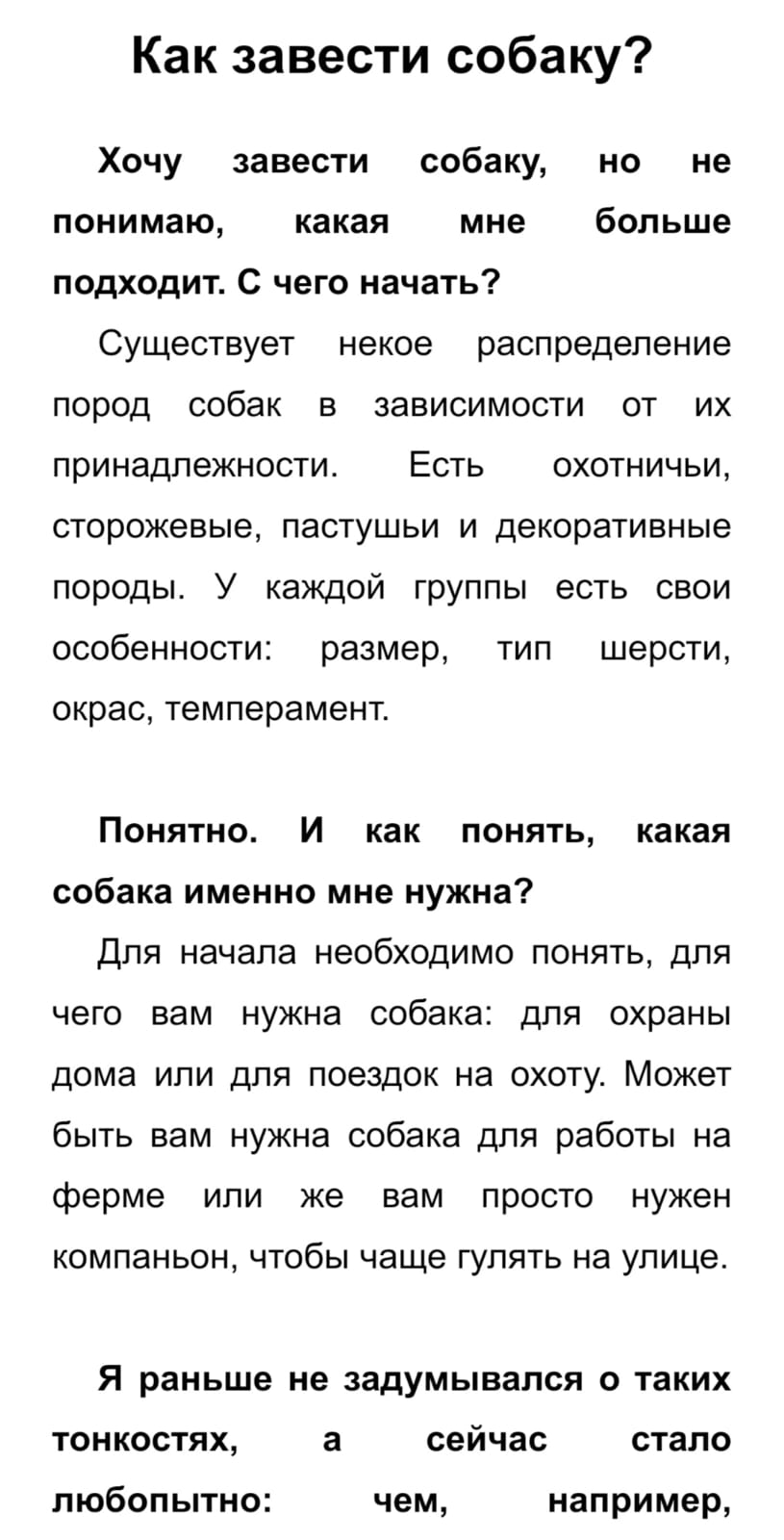 Статья на тему: "Как завести собаку". В тексте описаны все нюансы, которые будут полезны для будущего хозяина при заведении собаки.