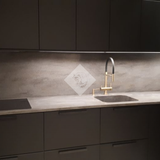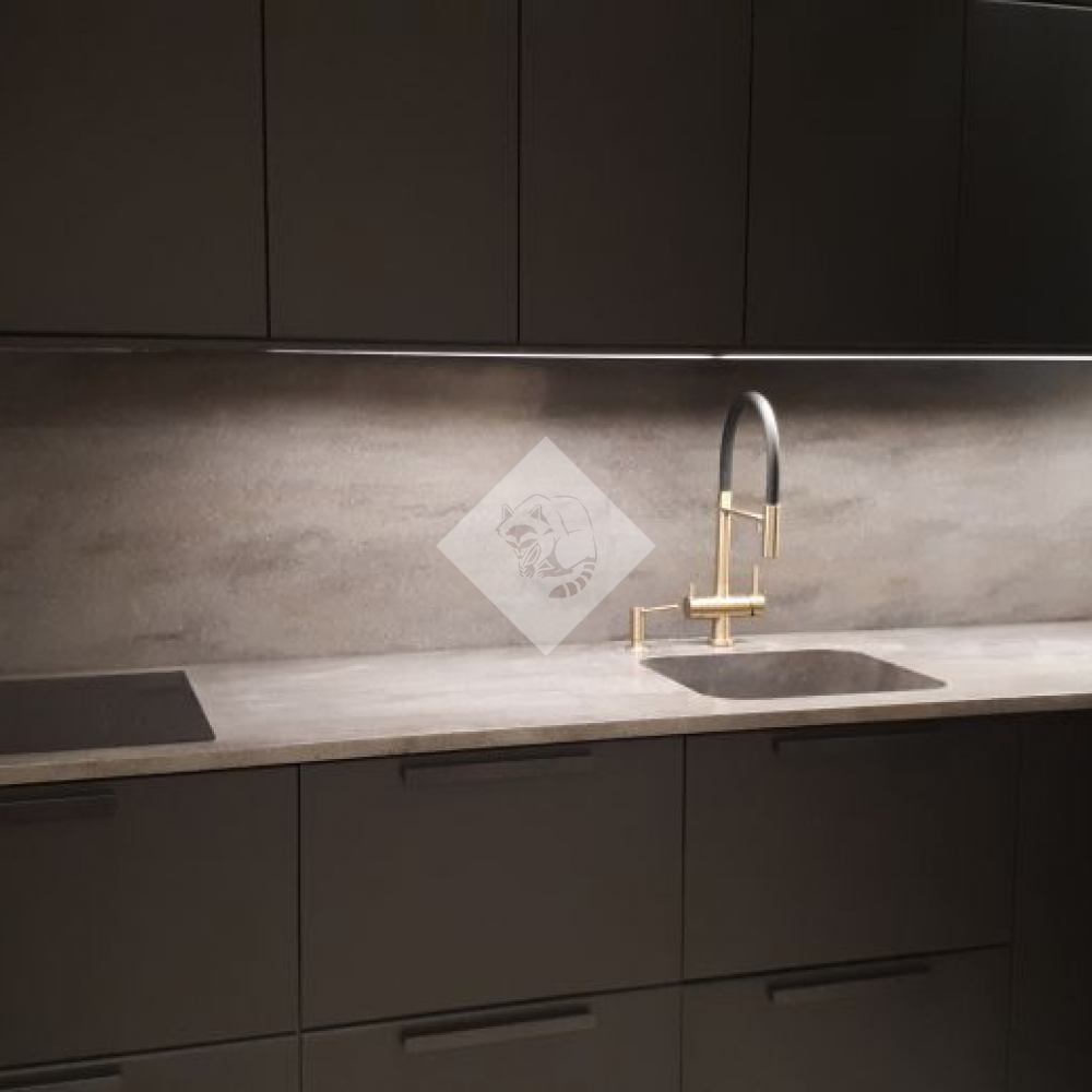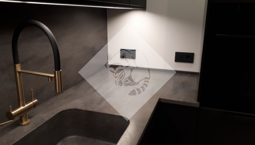 Столешница из искусственного камня и фартук отлично гармонируют с фасадом кухни. Интегрированная мойка в цвет столешницы. Марка камня и цвет: Corian Lava Rock 3,7 кв.м.Стоимость проекта 110 000 рублей