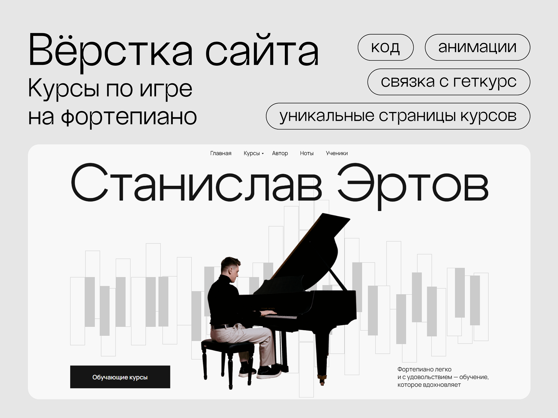 Главная задача вёрстки: связка платёжного модуля геткурс с сайтом, передача всех тонкостей дизайна
