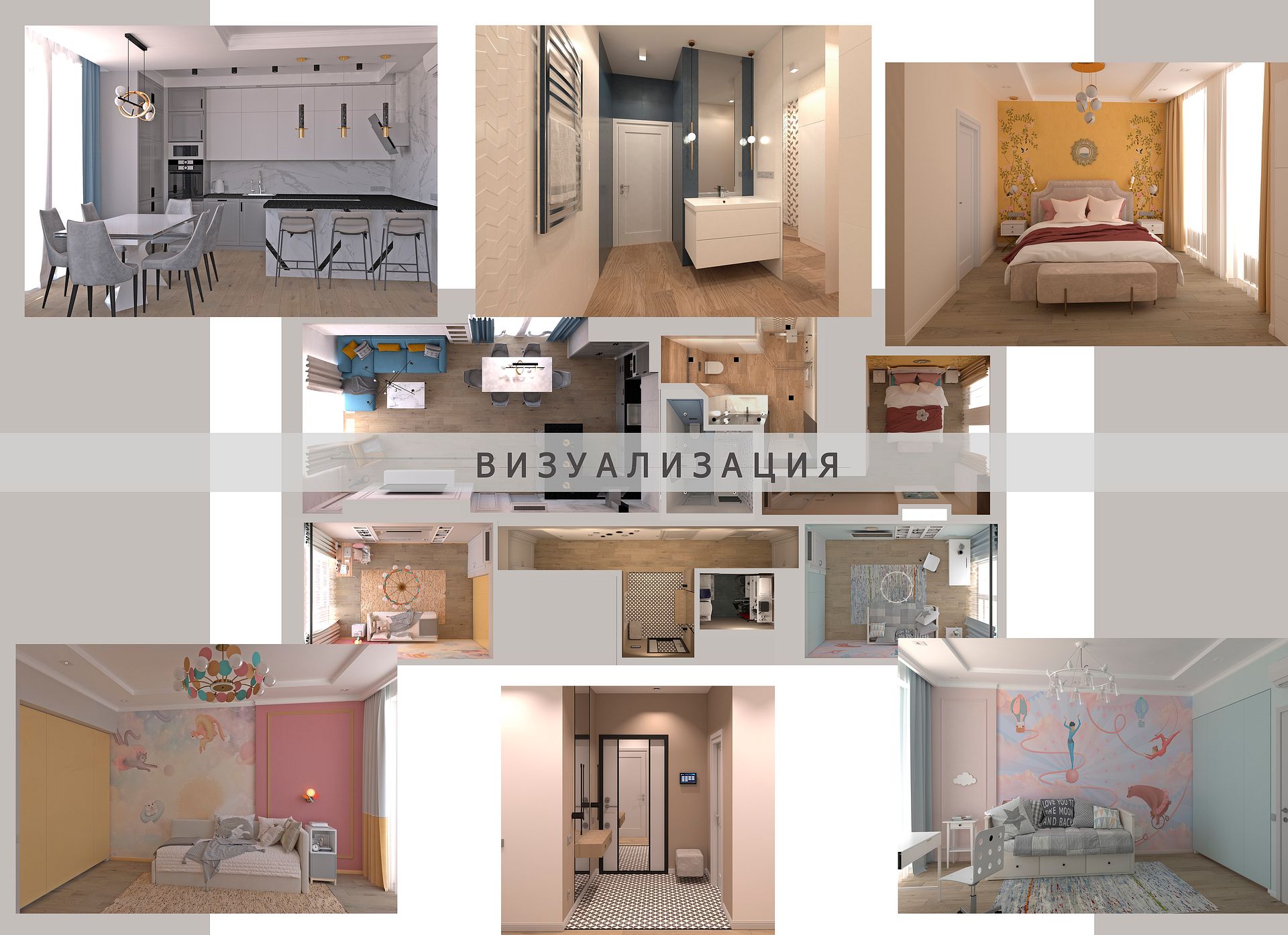 "Дизайн проект с визуализацией + спецификация материалов и мебели"