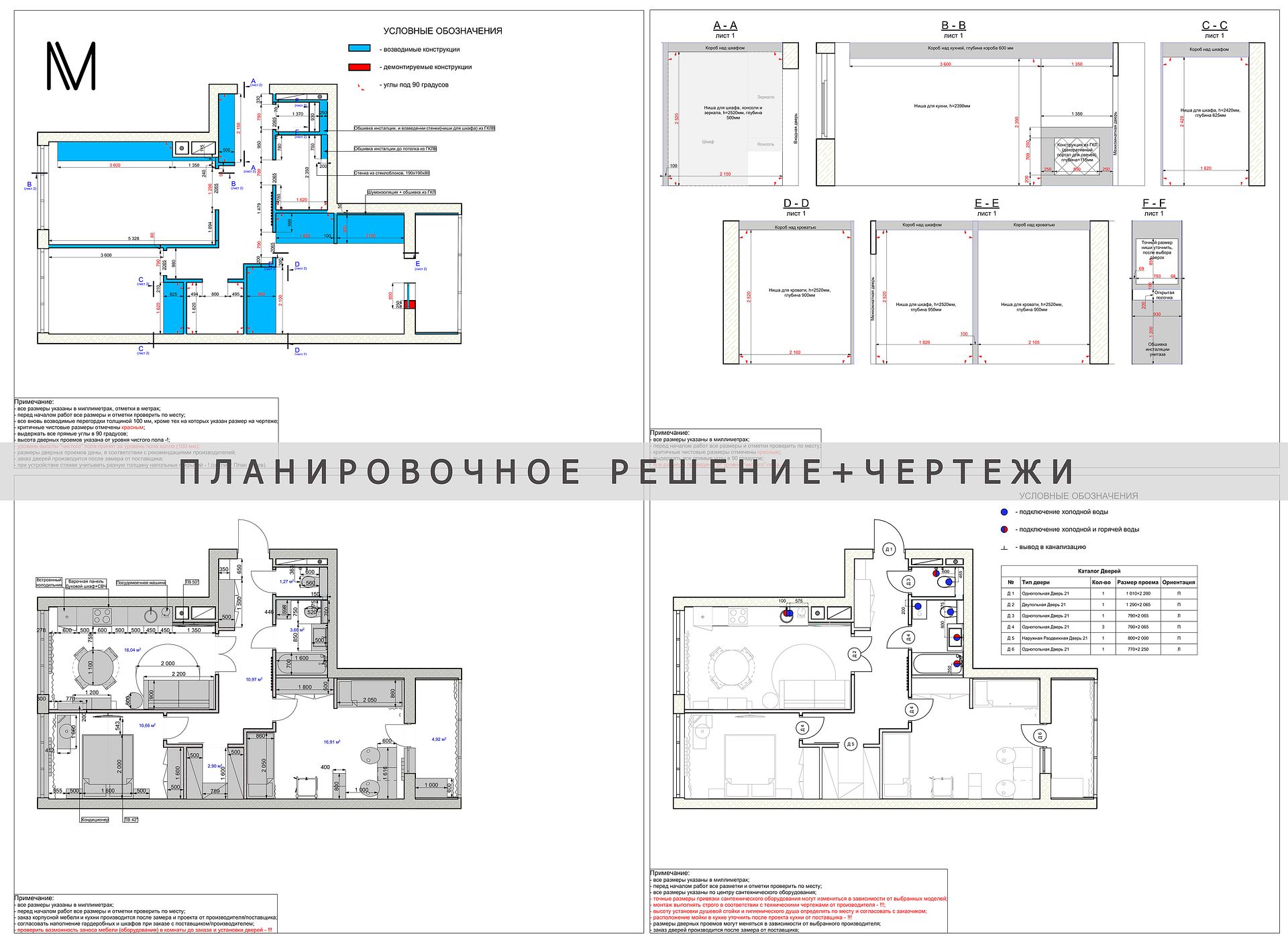 9 января, 2025"Планировочное решение+план электрики + план выводов сантехники + развертка кухни с расположением розеток и выключателей";