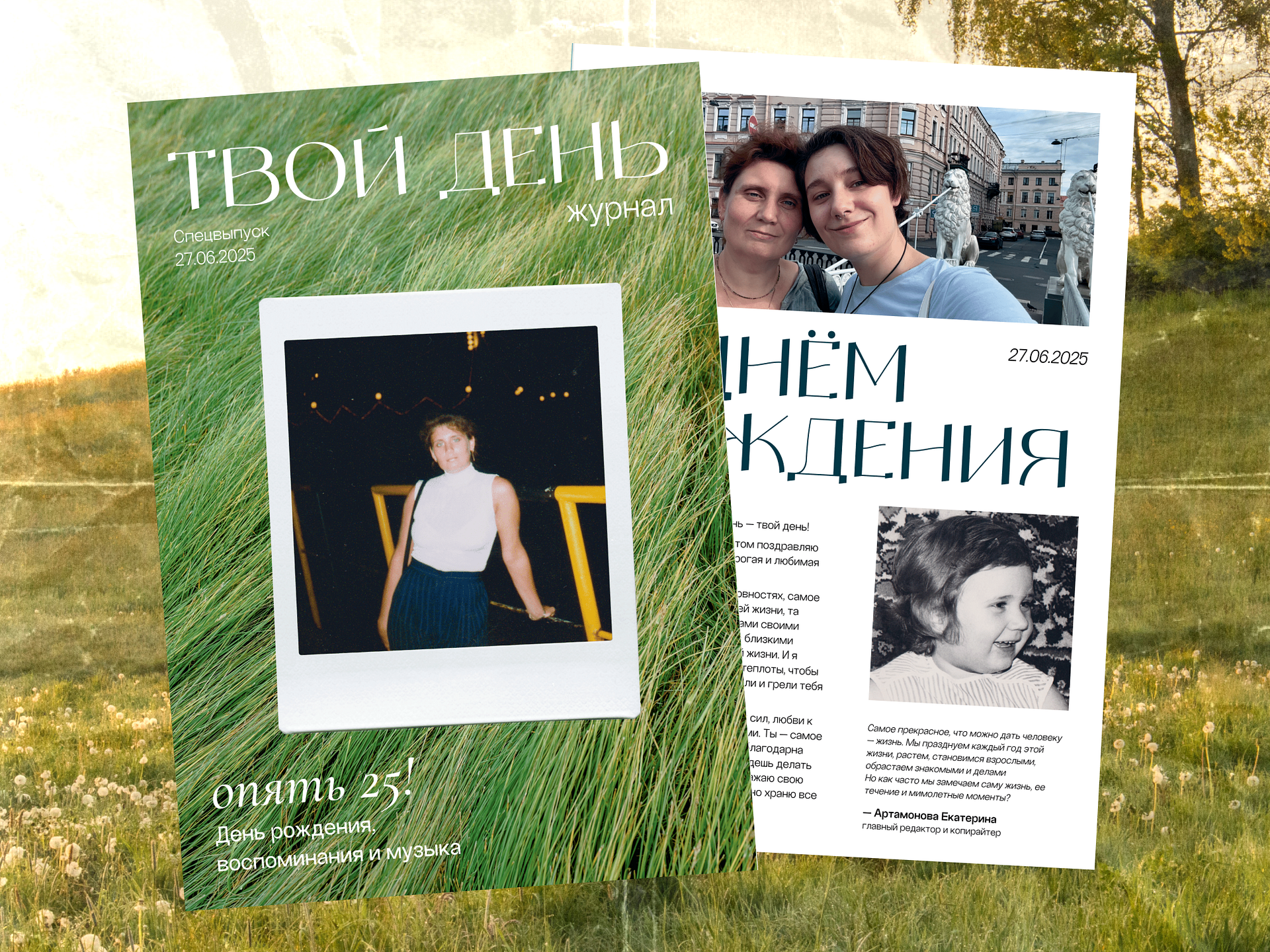 Самый трепетный и любимый проект — журнал для мамы!Оформила между ностальгией и глянцем, добавила рубрику с образами и музыкой, упаковала истории и воспоминания.По личным соображениям в кейсе указана лишь часть страниц