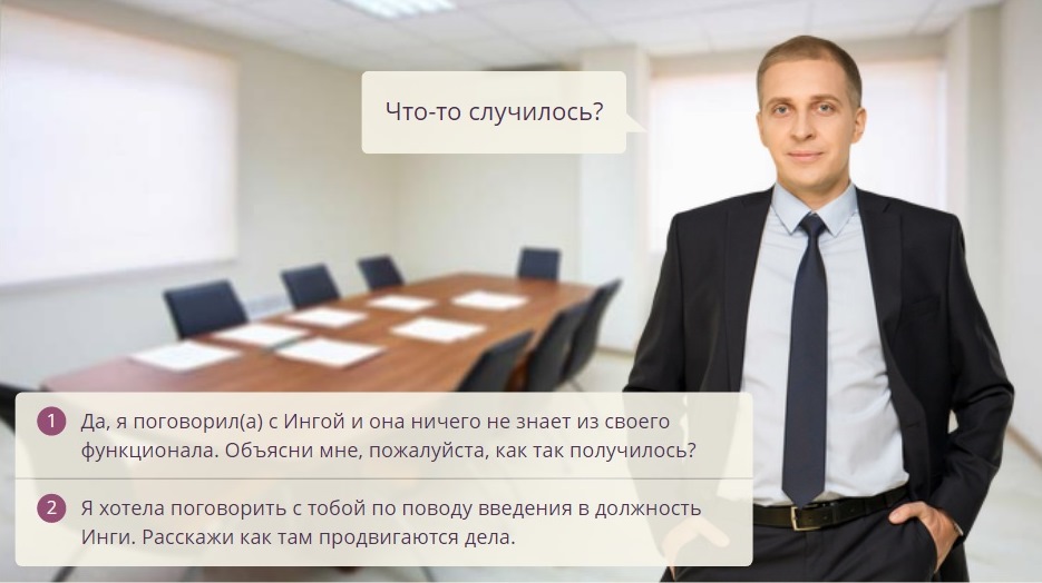 - При разговоре с подчиненным обучающийся применяет алгоритм выбранного вида обратной связи без ошибок