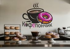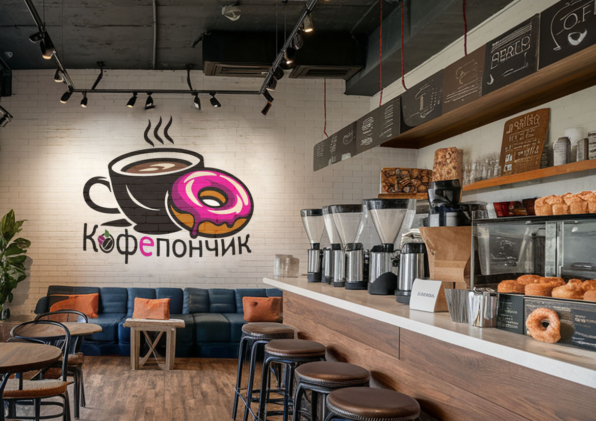 Логотип для кофейни которая гордится своим кофе и пончиками и всегда рада гостям.